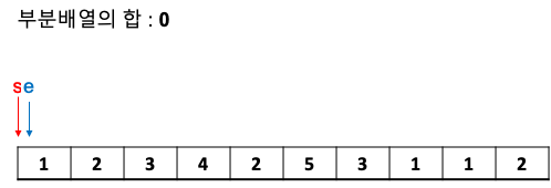 위에서 말한대로 두 포인터는 0을 가르키고 부분배열의 합도 0입니다.