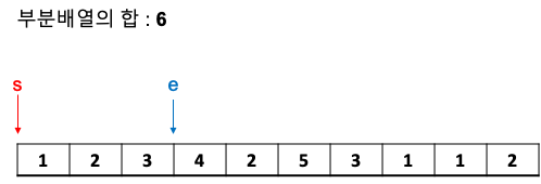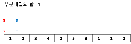 다음과 같이 두 개의 포인터를 조작하여 부분합을 구할 수 있는 이유는 배열의 값들이 자연수 이기 때문입니다.