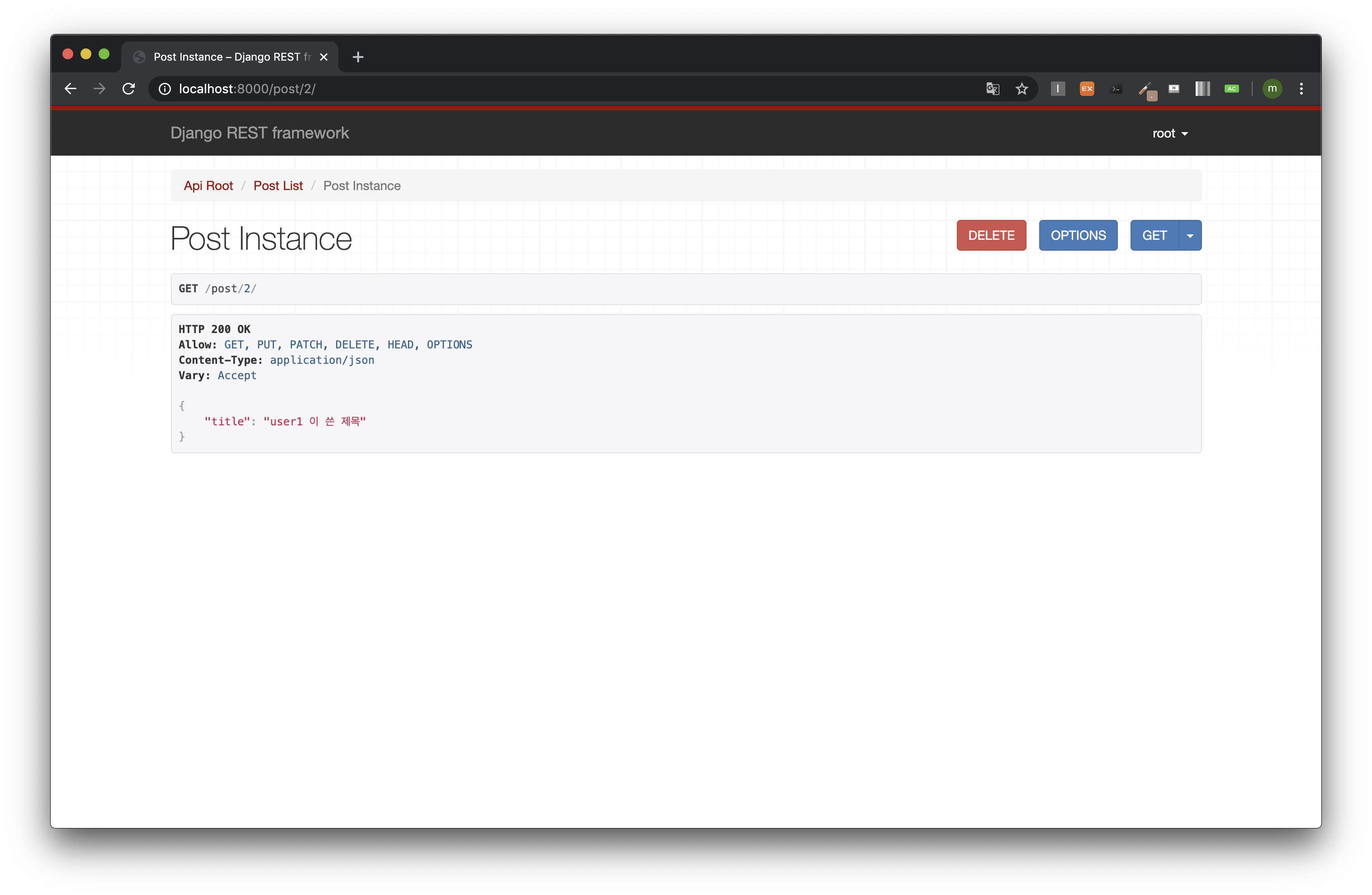 입력받을 때는 title만 받게 되고, response 대해서는 author_username 도 표시를 해주게 됩니다.
