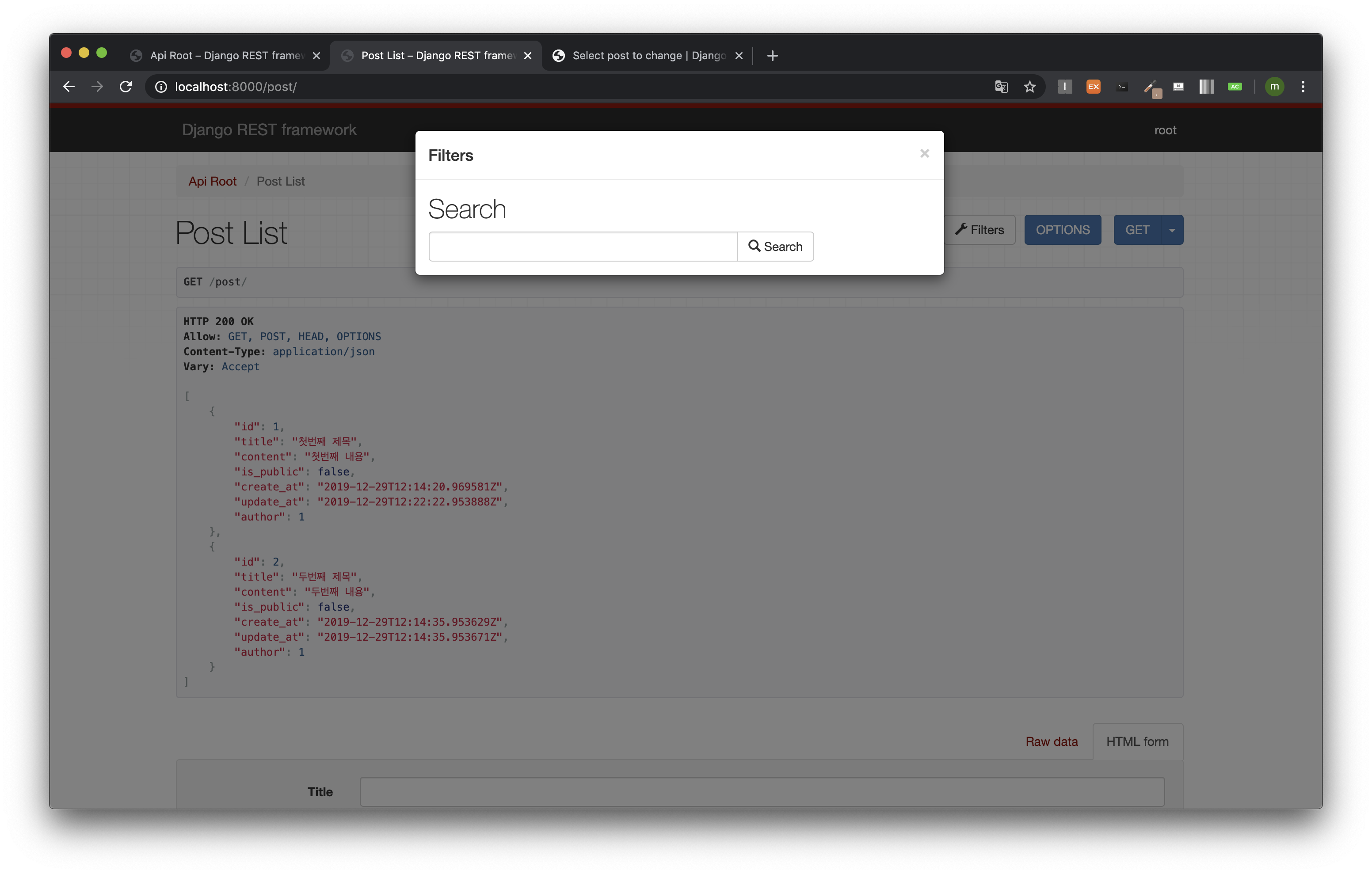목록을 조회하는 ListAPIVIew 에서 필터링하는 방법에 대해서 알아보도록 하겠습니다.