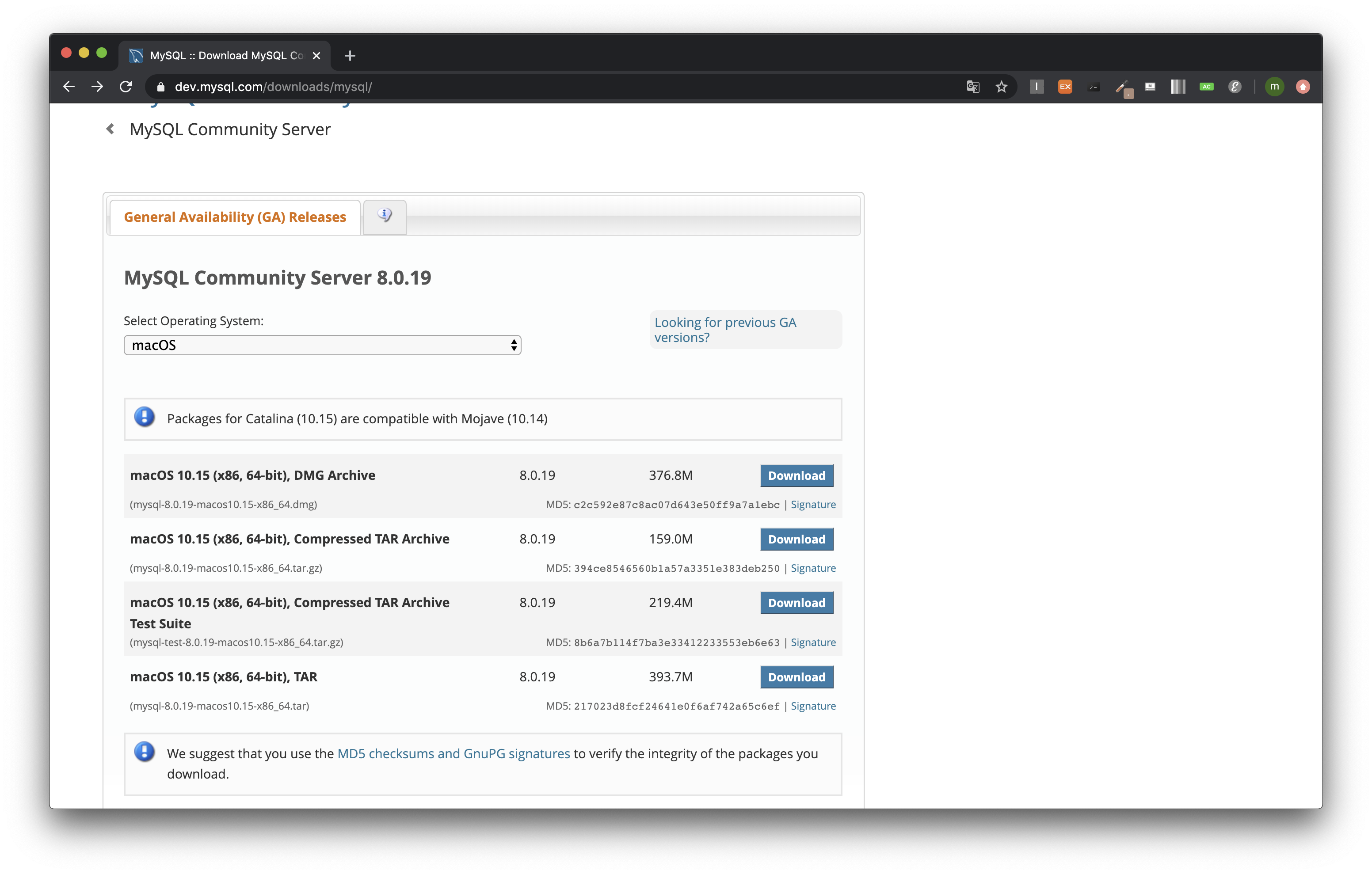 mysql Ver 8.0.19 for osx10.14 on x86_64 (Homebrew)